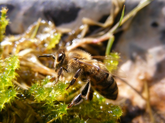 im Bienenparadies -Carnicabiene an der Wassertränke
